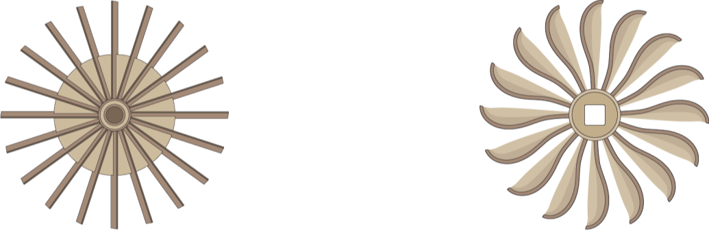 La représentation la plus ancienne connue qui fait allusion à un moulin à eau à roue horizontale, est une épigramme de Antipratos de Thessalonique, dont la date est présumée à 85 av.JC.