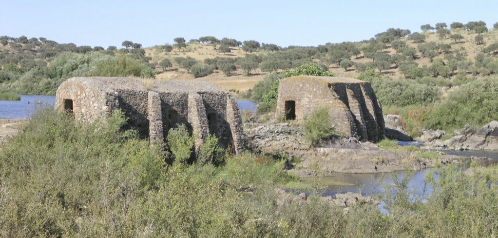 A forma dos moinhos de água do Guadiana é arredondada para opôr-se à corrente quando das elevadas