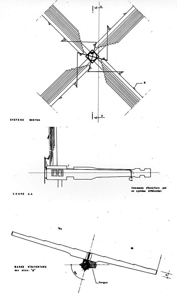 Moulin à vent pivot avec ailes à mécanisme d'ouverture type "Berton"